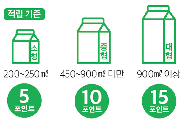 우유각은 수량 제한은 따로 없으나 크기에 따라 적립되는 충전금 포인트가 다른다.