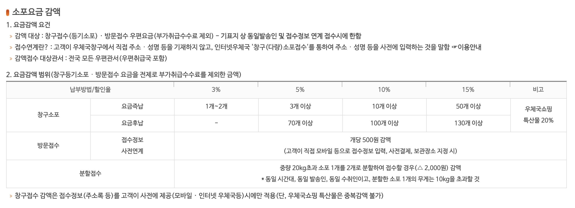 1개만 보내더라도 3%의 할인을 받을 수 있다. 홈페이지에서 사전 접수를 하고 우체국으로 방문해서 택배를 보내는 것이다.