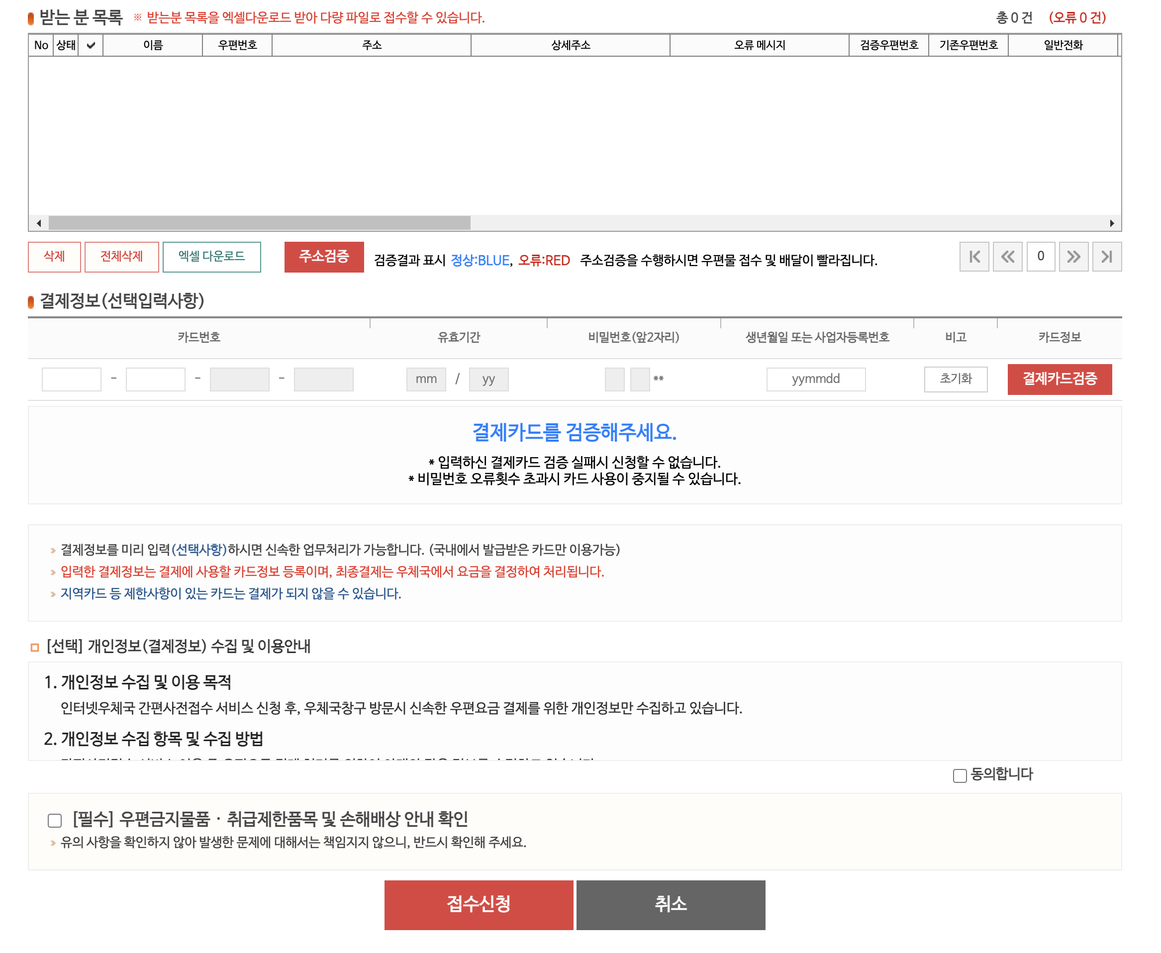 4. 아래 주소 검증을 한 후에 접수 신청을 한다.