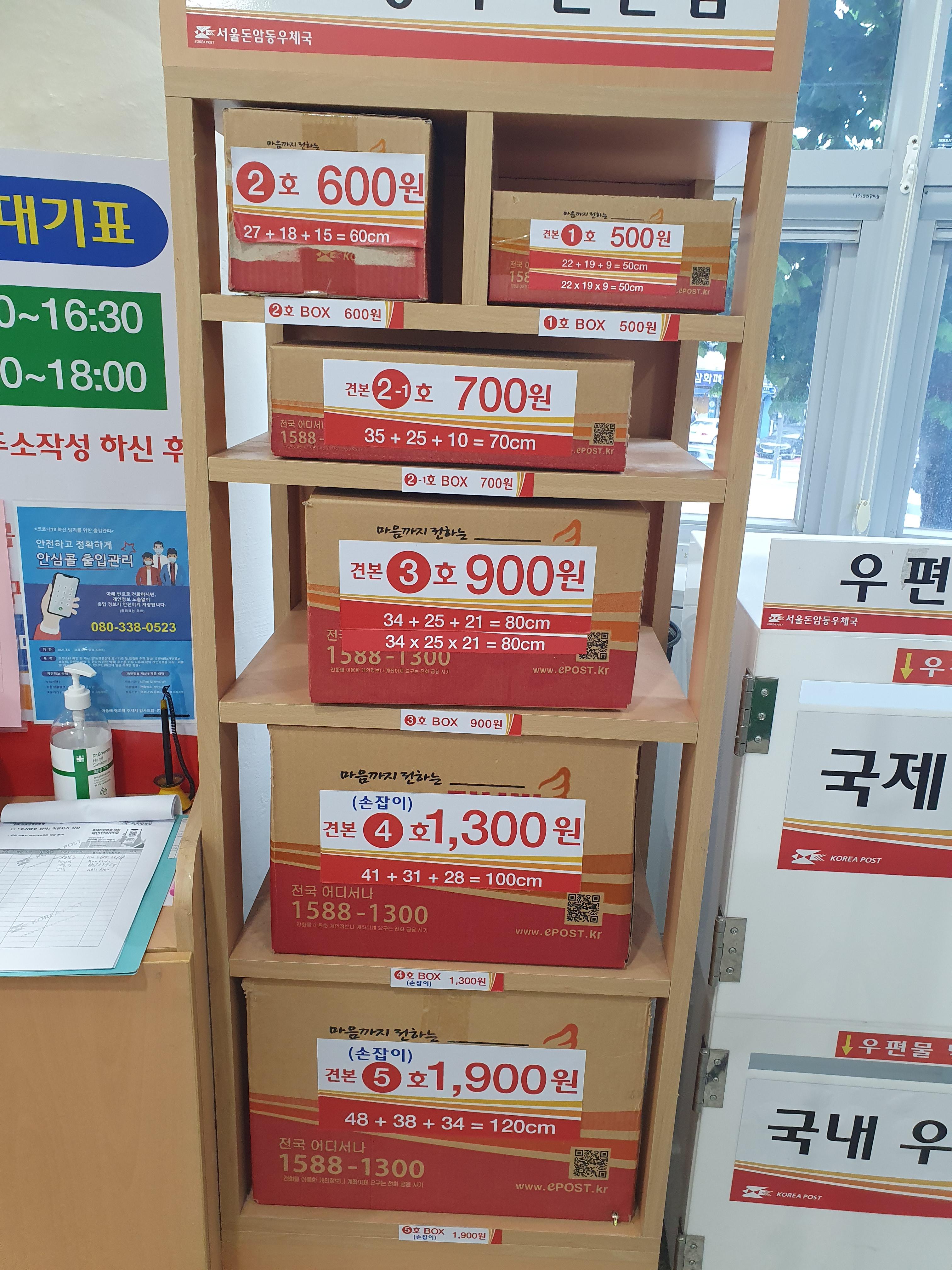 우체국 상자는 호수(크기)에 따라 가격이 다르다. (2024년 5월 15일 기준 가격)