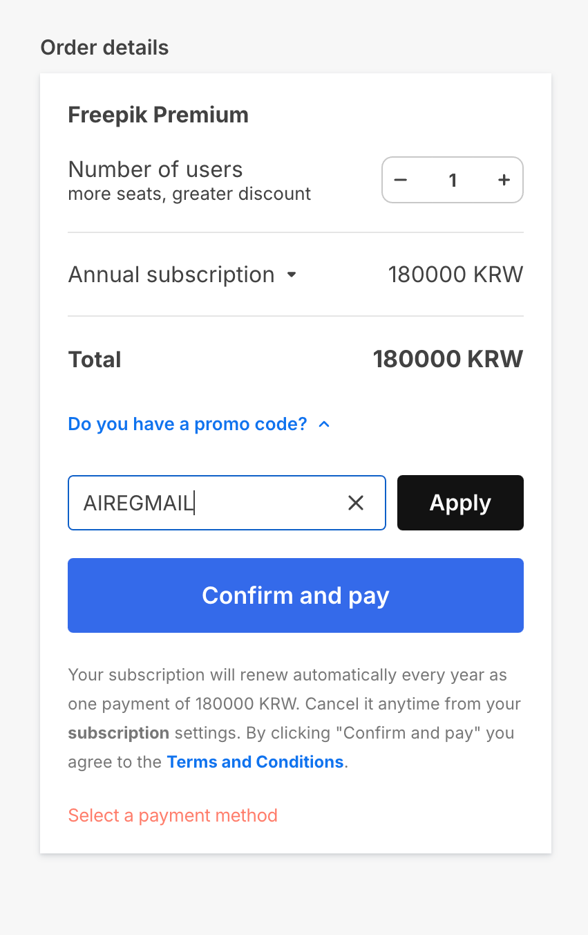 프리픽 freepik 할인코드 입력 방법